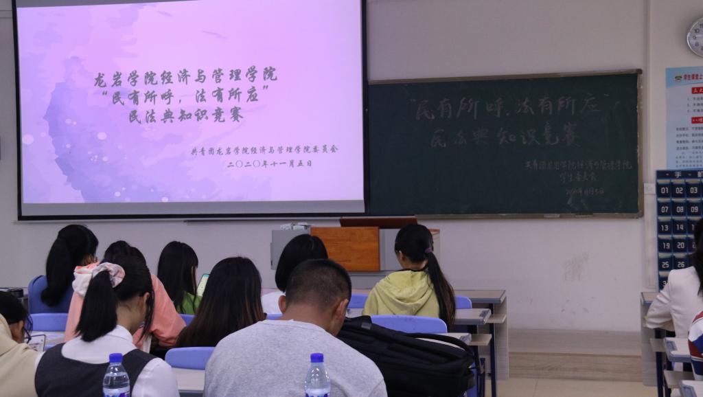 11月5日下午,经管学院于厚德楼314举行了以“民有所呼,法有所应”为主题的《民法典》知识竞赛决赛。通过初赛的12名选手俩俩组队进行决赛。本次比赛邀请到了各部门部长及主席团成员作为嘉宾出席。