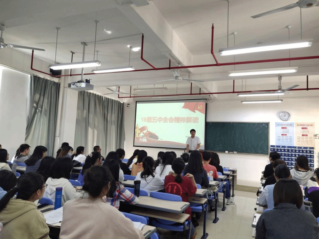 2020年11月3日,经济与管理学院学生第四党支部组织党员同志学习十九届五中全会精神,会议由经管学院常务副院长黄可权老师主持。