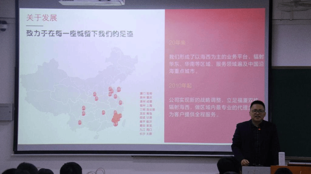 12月13日晚上,厦门立丹行公司在厚416举办了招聘宣讲会,经管学院的应届毕业生参加了此次宣讲会。本次宣讲会由厦门立丹行公司总经理曾晓亮先生主讲。