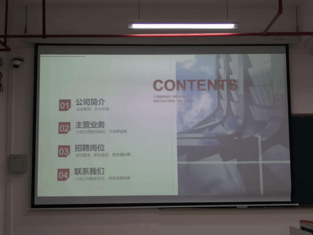 在此次宣讲会中,企业负责人从企业市场分布、主营业务、公司福利以及主要招聘岗位等方面展开介绍。该公司主要经营欧美贸易市场。因此,本次招聘主要对象是客户服务意识强、具有团队协作精神的运营专员。薪资福利方面,公司不仅为员工准备专门的休息室,还定期组织员工福利活动,更有每年两次升职加薪的机会。最后,负责人为同学们提供了线上线下两种方式,以便同学们能够更加全面地了解该企业。