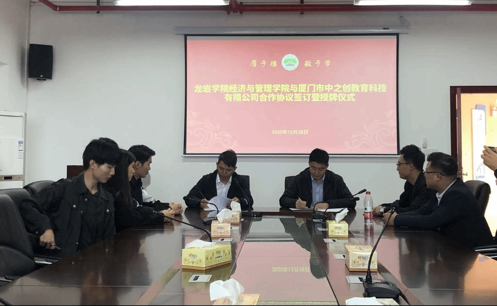12月28日下午,龙岩学院经济与管理学院与厦门市中之创教育科技有限公司合作签字暨授权仪式在厚德楼619会议室举行。龙岩学院经管学院常务副院长黄可权,聚英教育集团副总裁、厦门市中之创教育科技有限公司总经理江旭初,厦门市中之创教育科技有限公司市场部经理石磊等相关人员参加活动。黄可权和江旭初分别代表双方签署合作协议。江旭初为龙岩学院中国注册会计师(CPA)教育中心、龙岩学院特许金融分析师( CFA )教育中心、龙岩学院国际注册会计师(ACCA)教育中心、龙岩学院美国注册管理会计师(CMA)教育中心授牌。