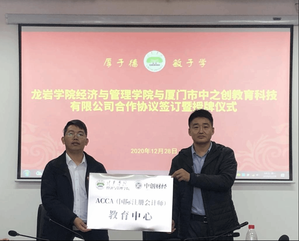 据悉,为顺应金融与投资产业政策发展需要,培养应用型高端新财经专业人才,促进海峡西岸经济区建设,龙岩学院经济与管理学院与厦门市中之创教育科技有限公司,联合建立龙岩学院中国注册会计师(CPA)教育中心、龙岩学院特许金融分析师(CFA)教育中心、龙岩学院国际注册会计师(ACCA)教育中心、龙岩学院美国注册管理会计师(CMA)教育中心,旨在对接龙岩学院经管学院财务管理、投资学等相关专业课程学习,为学生报CPA、CFA、ACCA、CMA搭建考前辅导培训载体和报考通道,帮助学生扩展职业能力与可持续发展空间。