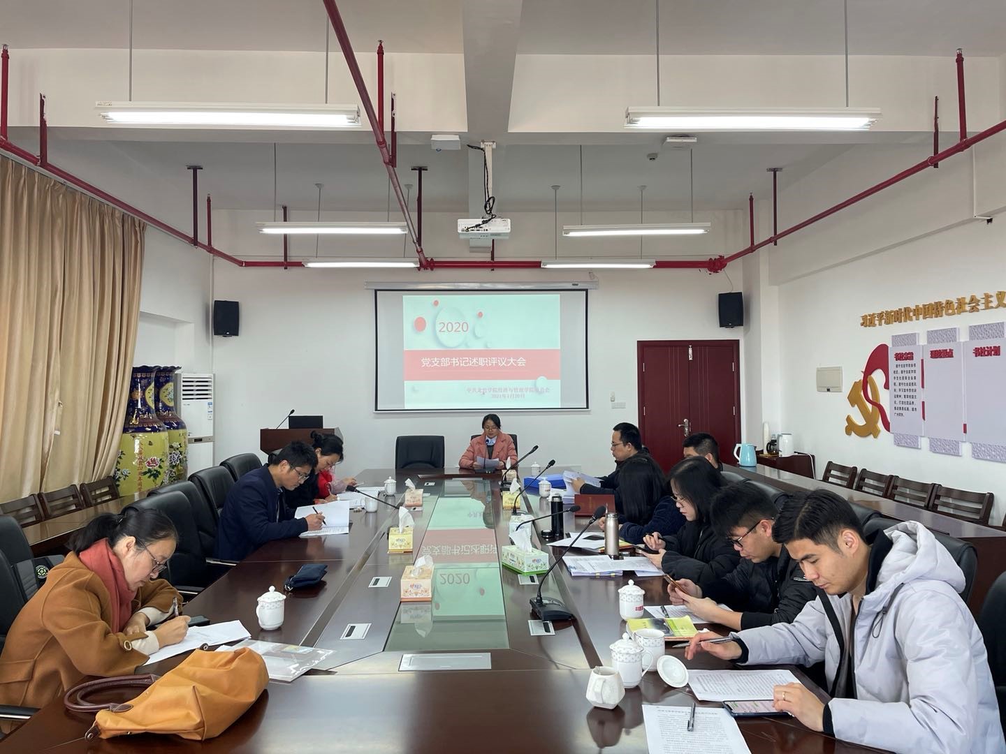 1月20日上午,经管学院在厚德楼619召开党支部书记抓党建述职评议大会,经管学院党委委员、各党支部书记参加会议,会议由院党委书记兼院长蔡立雄主持。