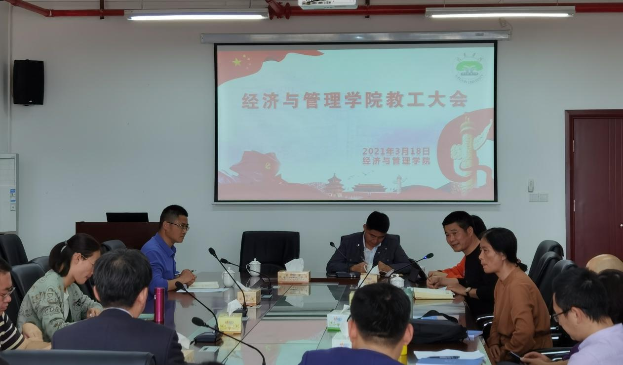 3月18日下午,经管学院在厚德楼619会议室召开全院教工大会。会议由常务副院长黄可权主持,全院教工出席此次会议。
