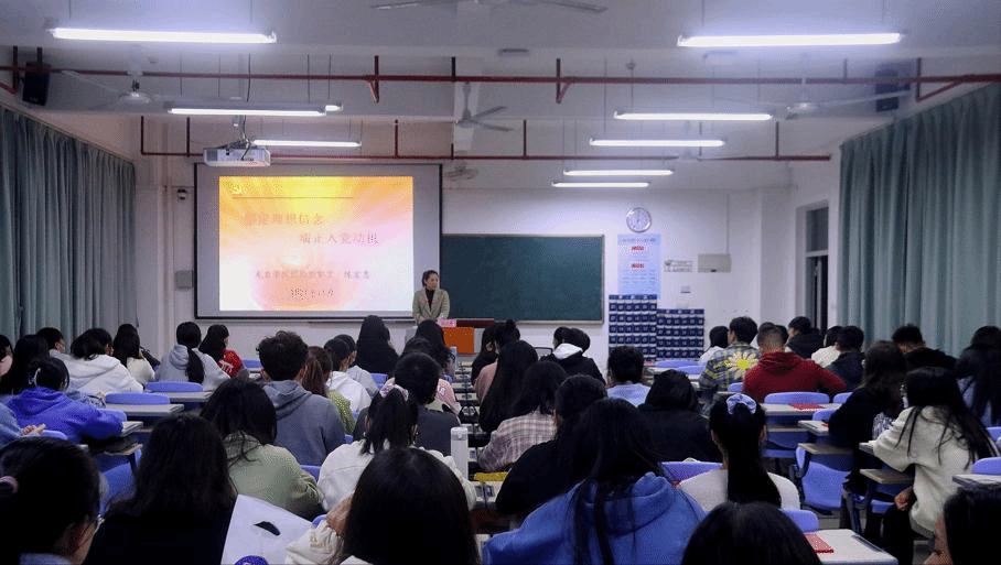 陈宏惠围绕入党动机和入党流程进行深入讲解,阐述了树立正确入党动机的原因和重要性,向同学们介绍了入党的详细流程,激励同学们积极向党员标准靠拢、向优秀党员同志学习。她教育同学们,堡垒是从内部瓦解的,一代共产党人用血和泪证实了“共产主义的世界观人生观是每个共产党员必须解决的根本问题,党组织要做好政治把关工作”。陈宏惠强调端正入党动机是一个长期的任务,每一位同学都需要在入党的道路上不断改进、不断提高,时时刻刻不忘初心和使命,以史为鉴,切勿一时放松政治学习和思想改造。