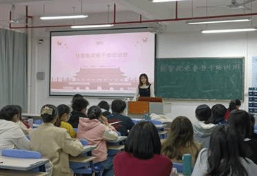开班仪式结束后,由经管学院团委副书记、党务部部长吴若水进行第一次党务培训课。吴若水结合自身的工作经历,从党员发展的原则要求、整体流程、材料填写的注意事项三个方面介绍了党务干部的基本任务,为同学们列举了党务干部需具备的能力,并结合最新的时事热点,鼓励同学们要时刻保持初心,不忘使命,不断完善自己,做一个有责任,有使命的经管学院党务部干部。