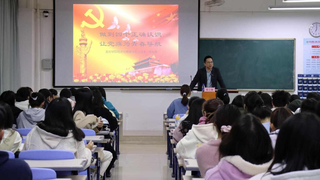 为切实加强入党积极分子的教育培养工作,提高入党积极分子的思想政治素质,11月10日晚,经管学院在厚416举行入党积极分子第五次党课培训,本次党课以“做到四个正确认识,勇当时代先锋”为主题,由院党委书记、院长蔡立雄主讲,经管学院第33期入党积极分子聆听本次党课。
