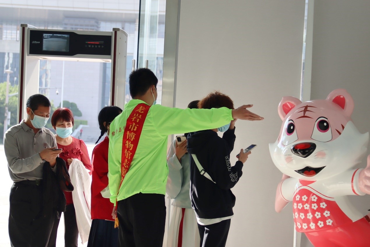志愿者们一部分在博物馆协助开展疫情防控工作,提醒游客佩戴好口罩,有序进行测温引导,另一部分在现场担任红色讲解员,让参观的游客更直观地了解中国共产党带领人民建设龙岩的红色历史。