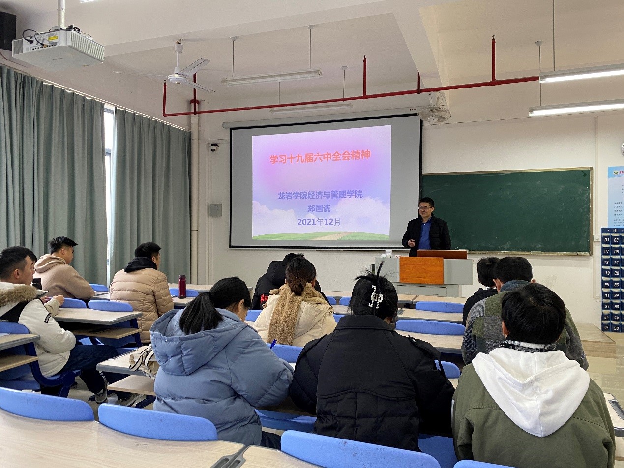 12月27日上午,经管学院学生第五党支部在厚314开展了“学习十九届六中全会精神”的主题党课,学生第五党支部书记谢斌老师和全体党员出席,经管学院党委委员、副院长郑国诜博士主讲。