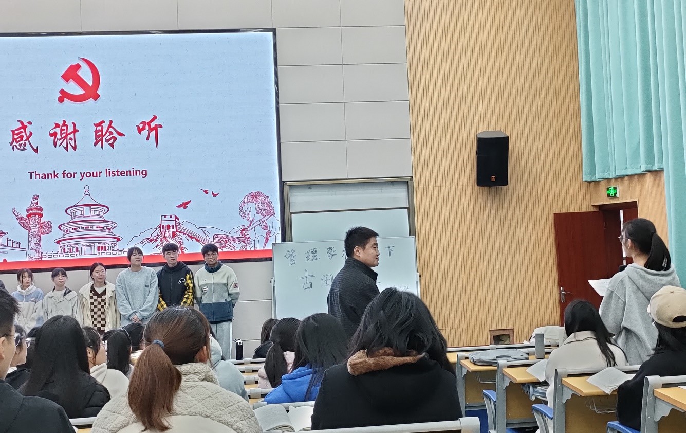 工管2021级三班二组专题汇报过程中,11名同学全员上阵,群策群力,通力协作,高质量完成了小组专题汇报任务,其本身就是管理理论联系实际的一个具体应用。通过专题报告“知识输入、能力输出”,强化了管理学理论知识的理解和运用,达到了运用特色红色资源课程思政、淬炼学生理论联系实际分析和解决现实问题的能力、促进所学理论知识内化为底层管理思维的多重教学目标,既是对同学们本学期《管理学》学习成效的一次集中检验,也是新一代大学生们以自己的独特方式对古田会议成功召开92周年的最好纪念。