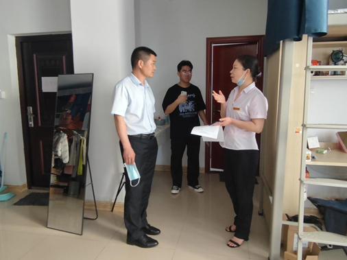 在走访宿舍的过程中,领导老师们仔细察看了学生宿舍内部环境卫生、用电器使用情况、电线老化情况、桌椅床架等损坏情况,提醒同学们要提高安全防患意识,严禁使用违规电器。针对最近大学生电信网络诈骗案件频发,领导老师们还叮嘱同学们要提高安全防范意识,预防电信诈骗。同学们还询问了一些关于学习生活上的事务,老师们均逐一予以耐心解答。