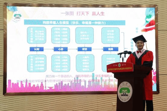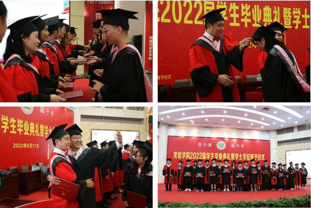 典礼上,院长黄可权为2022届毕业生发表毕业寄语,他代表学院向全体2022届毕业生表示热烈的祝贺,并嘱咐马上就要完成由校园人到社会人角色转变的同学们,一定要牢记“明经达礼,崇德尚行”的院训,不忘初心,热爱劳动,保持学习,争做“有理想、有本领、有担当”的龙院人,永葆青春底色,铭记母校培养,在人生的道路上书写自己的精彩人生!