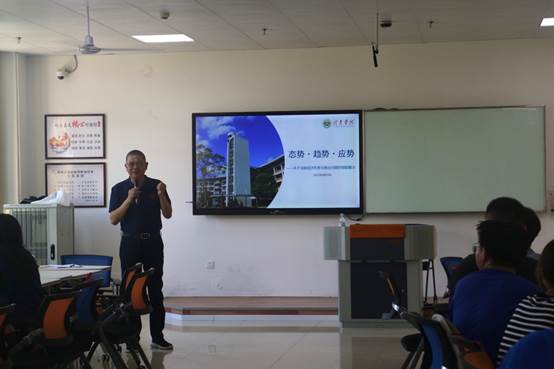 6月23日上午,校党委副书记陈开明在厚德楼203教室为经管学院大三学生上了主题为《态势·趋势·应势——关于当前经济形势与就业问题的粗略看法》的思政课,课堂由经管学院党委书记卢永衡主持。