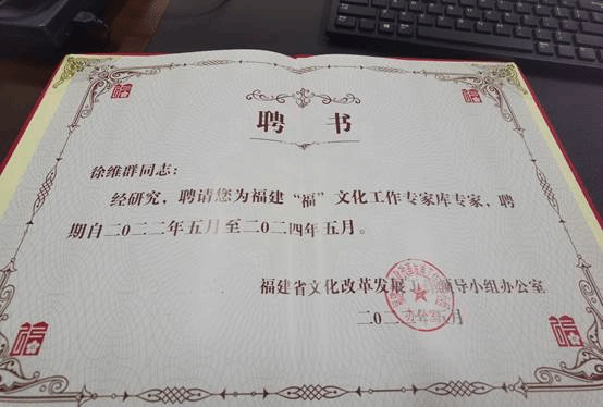 为落实省委省政府关于加强福建省“福”文化推广与创作,近期,根据省委宣传部《关于推荐福建“福”文化工作专家的通知》,经申报与推荐,经管学院徐维群教授入选省委宣传部福建“福”文化工作专家库专家,首个聘期为2022年5月至2024年5月。
