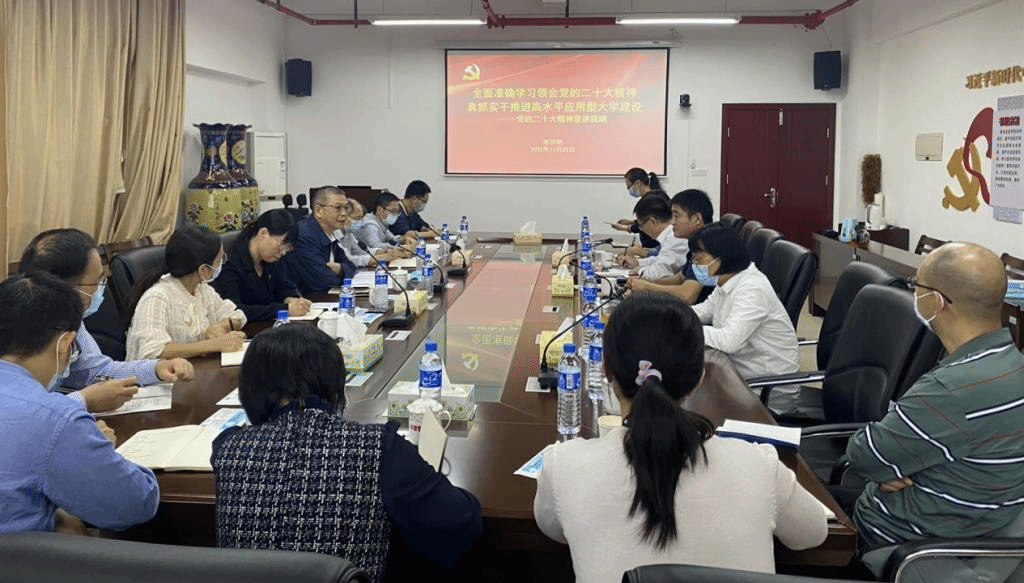 课上,陈开明以“全面准确学习领会党的二十大精神 真抓实干推进高水平应用型大学建设”为题,围绕“深刻把握党的二十大主要精神”“深刻领会教育、科技、人才战略定位的重大意义”“如何抓好贯彻落实”等三大方面进行了深入浅出的阐述。他指出,学习宣传贯彻党的二十大精神是全校师生当前和今后一个时期的首要政治任务,必须坚持全面准确、深入理解内涵,精准把握外延,着重把握《中共中央关于认真学习宣传贯彻党的二十大精神的决定》明确要求的九个深刻领会,学深悟透党的二十大精神。