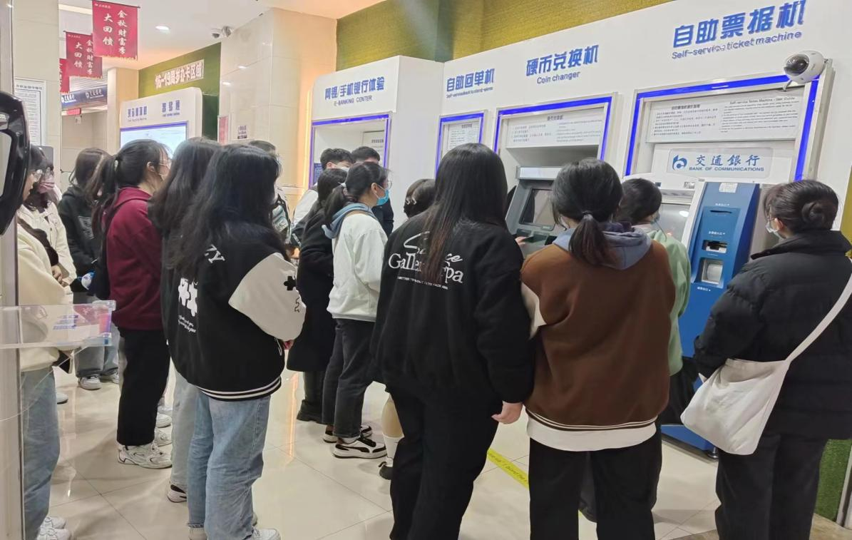 交通银行工作人员热情接待前去参观学习的学生,为大家讲解银行的部分业务实操办理,指导学生体验金融业务的相关实操。银行工作人员从贴近学生生活的案例出发,在普及存贷款等基础知识之余,还进行预防电信诈骗知识宣传。