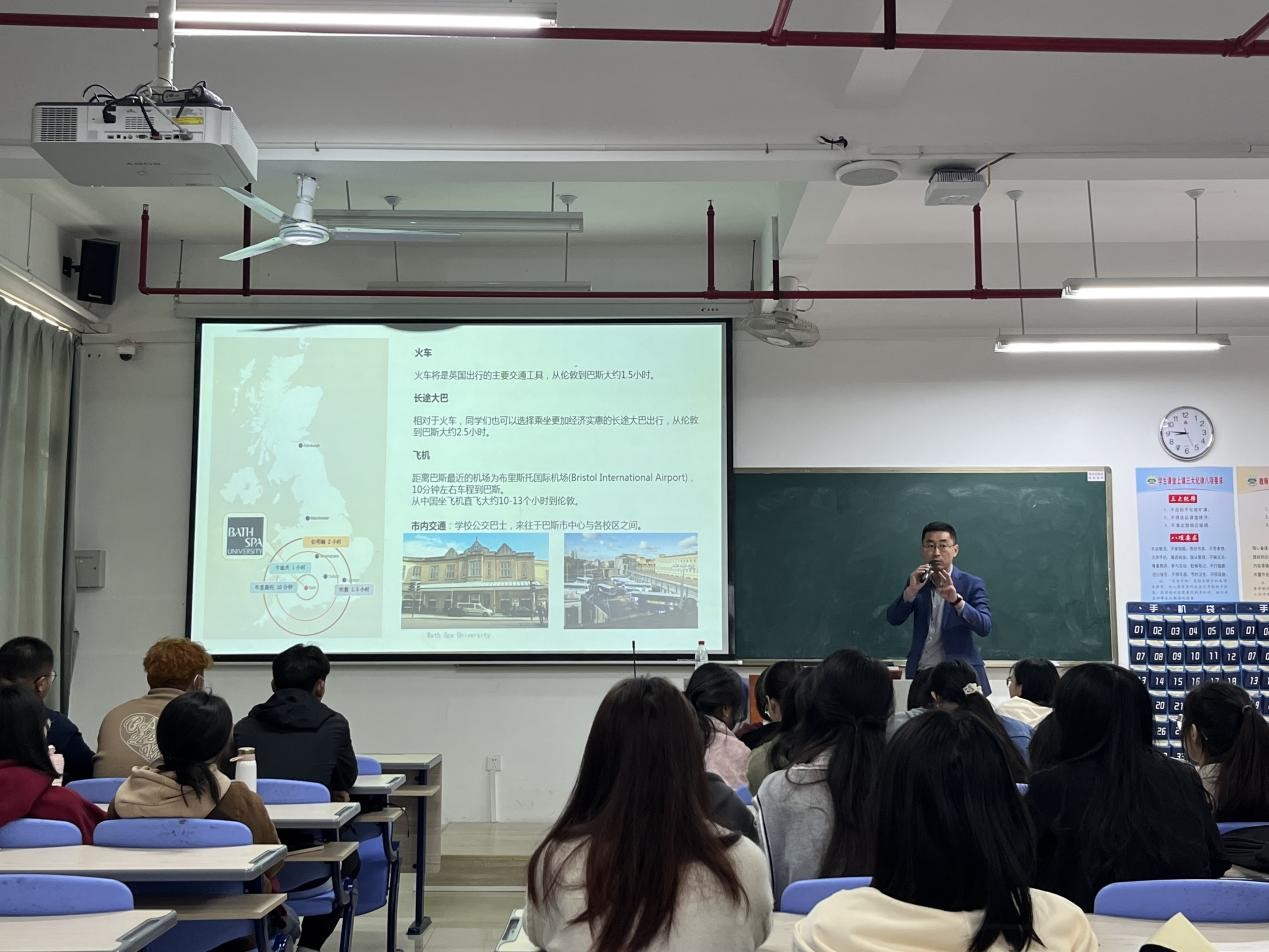 3月10日,学校对外处邀请英国巴斯斯巴大学国内项目中国区首席代表王广胜,在厚212为我院学生宣介英国巴斯斯巴大学的留学项目。来自2021级国际经济与贸易专业和2021级旅游管理专业的学生聆听了此次宣介会。