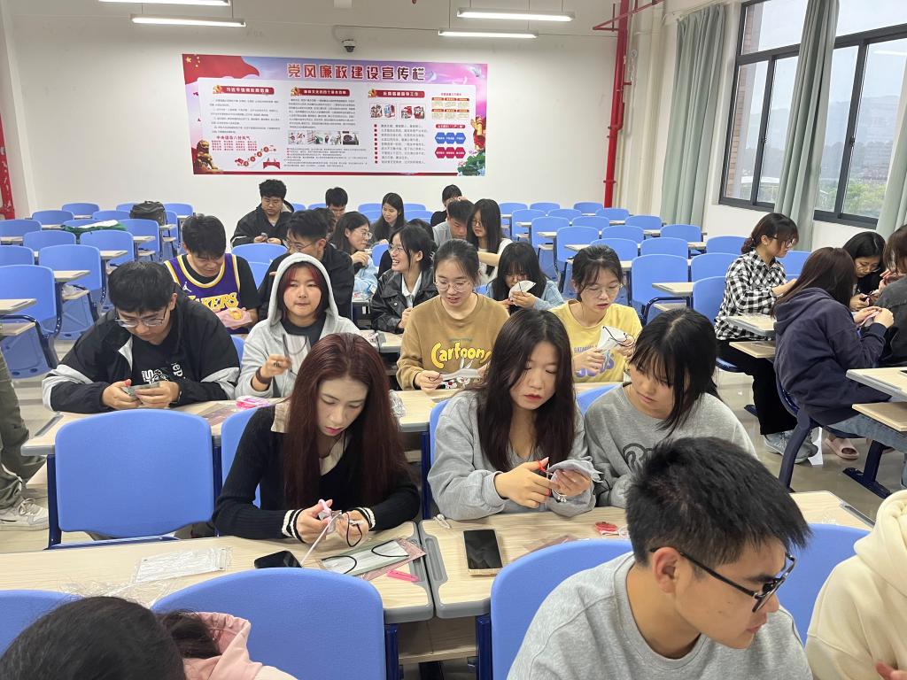 活动中,李佳怡播放世界睡眠日的相关视频,向同学们介绍常见的睡眠问题,科普有关健康睡眠的知识,增加同学们对睡眠知识的了解。在场同学们结合自己的想象,动手制作创意睡眠眼罩。