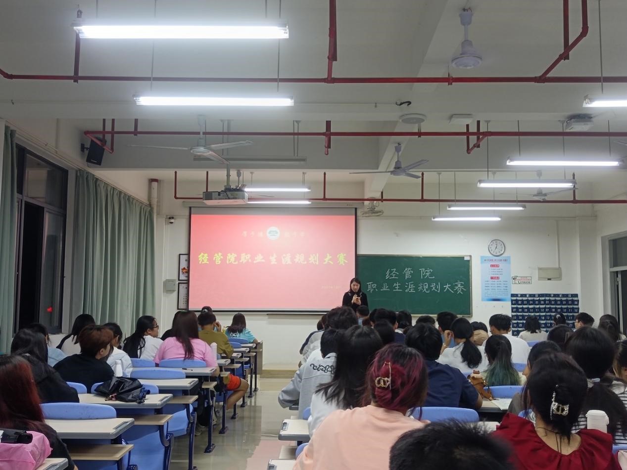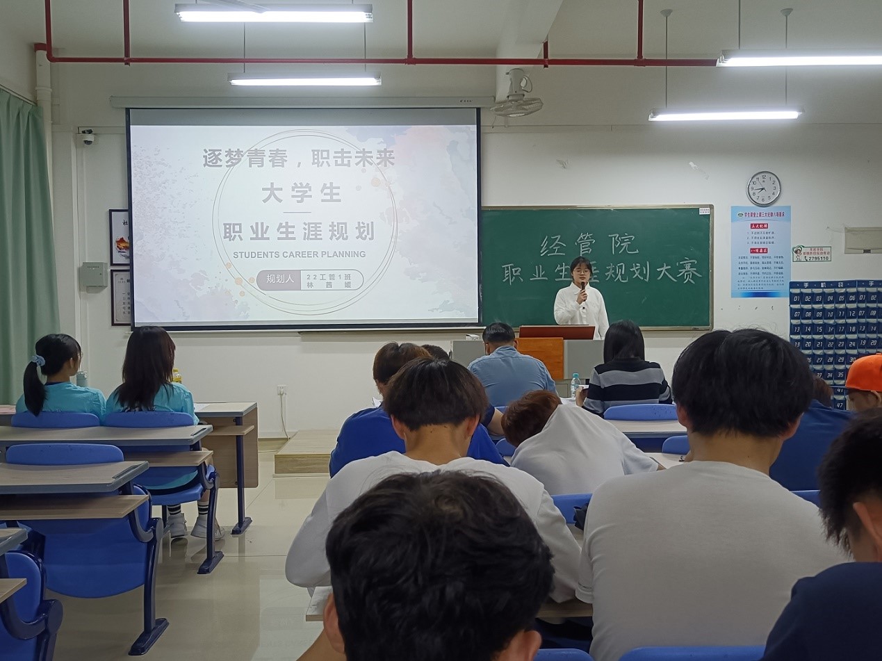 为切实贯彻落实“建立和完善高校毕业生就业服务体系”和《教育规划纲要》要求,引导同学们树立正确的成才观、择业观和就业观,4月23日晚,经管学院在厚德楼403举办“奏响青春旋律,规划精彩人生”职业生涯规划大赛初赛。本次活动由经管学院承办,校就业指导中心主任郭明净、生命科学学院团委书记周玥应邀担任评委。