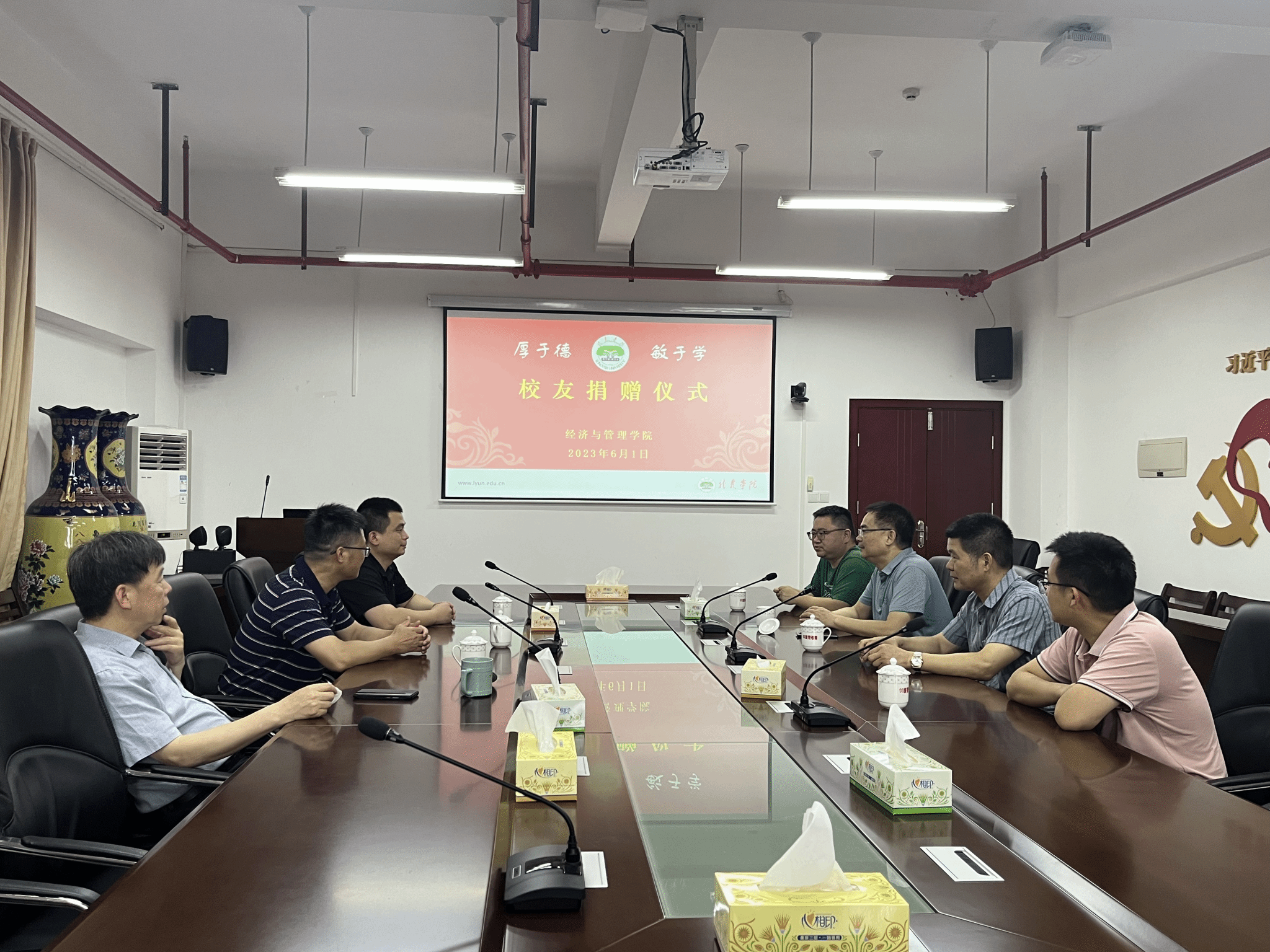 戴腾荣表示在龙岩学院65周年校庆之际,谢玮鑫校友通过这个机会表达对母校的感恩之情,来得及时,富有意义。同时表示,将进一步加大校友联络服务力度,积极对接服务校友企业,深化双方在科学研究、成果转化和人才培养等方面的合作。