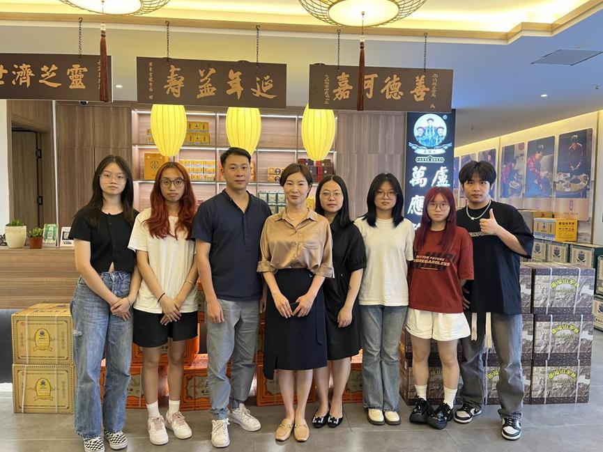 次日上午,在李崧老师的引荐下,实践队来到新罗区中国万应茶总部,与卢福山万应茶第八代嫡系传承人卢常德先生进行访谈交流。他亲自带领师生参观总部,通过历代传承人、家训牌匾等图文资料和产品实物向大家介绍卢福山万应茶的发展历程和文化底蕴,并分享自己在传承过程中的心路历程和感悟,以及万应茶的销售思路和规划设想,包括拓展线上销售渠道、加强品牌推广、发挥侨乡优势等方面。随后,双方就校企合作事宜展开深入探讨。卢常德对建立龙岩学院实习实训基地以及合作组建大学生直播团队表示出有浓厚兴趣和强烈意愿,希望为学生提供更多的实践机会和培训资源。党支部也表示将积极推动该合作项目的落地,助力宣传推广万应茶文化和产品。