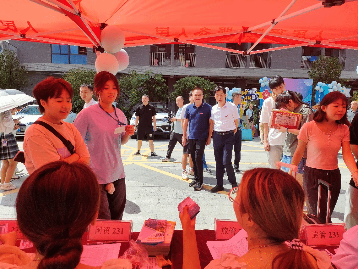 经济与管理学院党委书记卢永衡、院长黄可权、副院长吴盛汉、副院长郑国诜、党委副书记张小玲先后来到至善组团迎新报到处,了解迎新动态,指导迎新工作,慰问参与迎新工作的师生员工,深入了解学生情况,向学生及家长介绍学校办学相关情况,鼓励新生勤学奋进、立志成才。