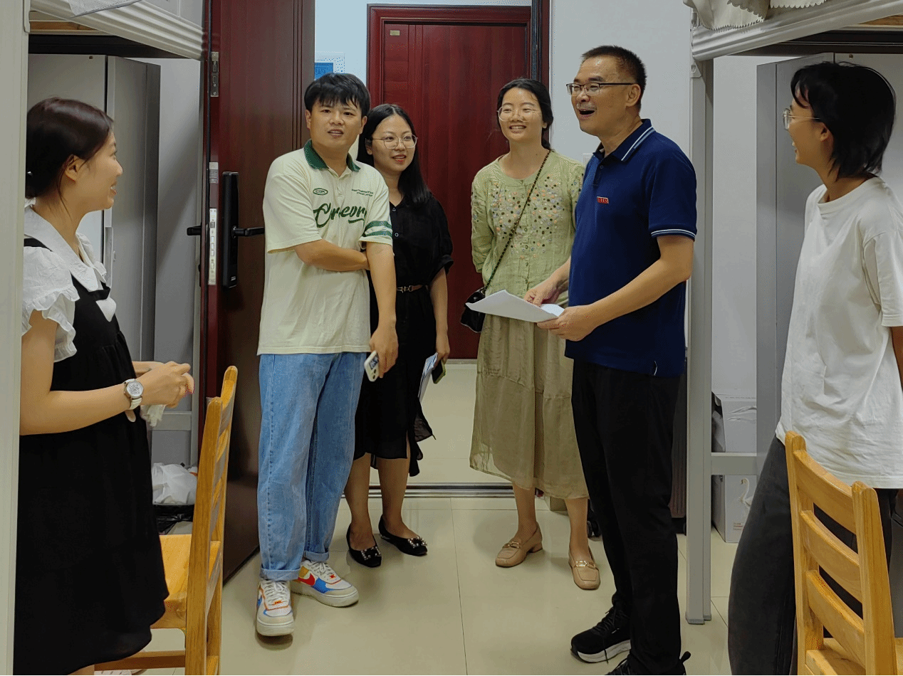 领导老师们认真了解并查看学生宿舍的环境卫生情况,查验宿舍房间设施配置是否可用、齐全,与新生进行亲切交流,了解新生的生活情况。嘱咐新生一定要提高安全防范意识和能力,谨防上当受骗。希望同学们尽快适应大学生活,不忘上大学的初心,坚定信念、脚踏实地,以行动践行理想,成长为更好的自己。