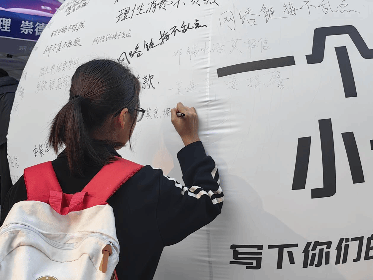 活动采用了线上、线下相结合的方式进行,全方位、多角度地为学生们普及防电信诈骗知识。在线上部分,同学们只需通过朋友圈分享相关文案并集赞,即可参与到活动中来;在线下部分,活动现场热闹非凡,同学们在工作人员的引导下,纷纷下载关注“国家反诈中心”APP,并参与防范电信诈骗知识问答。他们还在主题签名气球上签名拍照打卡并发朋友圈,以此形式获取活动分。活动中,同学们深入了解防范诈骗的基本知识和技巧,并积极向身边的人宣传防电信诈骗知识。