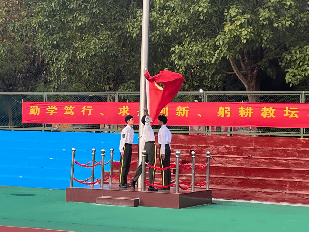 仪式上,护卫队同学首先将五星红旗缓缓升向顶端,伴随着雄壮的国歌,同学们全体肃立,表达对祖国的崇敬和热爱。随后,辅导员曹松老师对获得“打造龙院学风建设,励志经管筑梦成才”的励志先锋进行了表彰。辅导员游生富老师就学校近期开展师范类认证工作提出了相关要求。院团委书记张璐滢老师进行了运动会动员讲话。她以热情饱满的言语激励同学们斗志昂扬地投入到即将到来的体育比赛中,激发同学们的运动热情。最后,院党委副书记张小玲老师做总结讲话。她强调了健康安全问题以及自我定位的重要性,希望同学们可以保持积极向上的态度,找到适合自己的领域和位置,充分挖掘个人潜力。