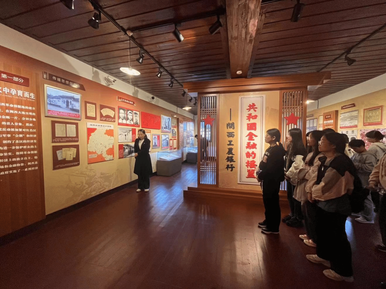现场教学过程中,授课教师邹阳老师结合实地参观考察情况,向同学深刻阐述了闽西工农银行发行纸币、支持工农业生产等具体实践,为巩固红色政权、支持苏区经济发展、改善平民生活,以及成立中华苏维埃国家银行乃至发展新中国金融业等作出了重大贡献中,所蕴含的党的金融工作的政治性和人民性。指出:中国共产党领导下的红色金融,从大革命时期起步,于两万五千里长征中依靠“扁担银行”薪火相传,在抗日战争的烽火中淬炼壮大,伴随着解放战争的隆隆炮声走向统一,谱写了从无到有、从小到大、从弱到强的辉煌乐章,是中国共产党百年奋斗史的重要组成,是红色资源中的瑰宝。作为闽西所在地高校培养的当代大学生,要汲取闽西红色金融宝贵经验,传承红色金融历史基因,不忘初心使命,庚续红色血脉,弘扬革命精神,坚守金融工作的政治性和人民性,努力学好金融投资等专业知识,为投身以中国式现代化全面推进中华民族伟大复兴的具体实践吸取力量、增长才干。