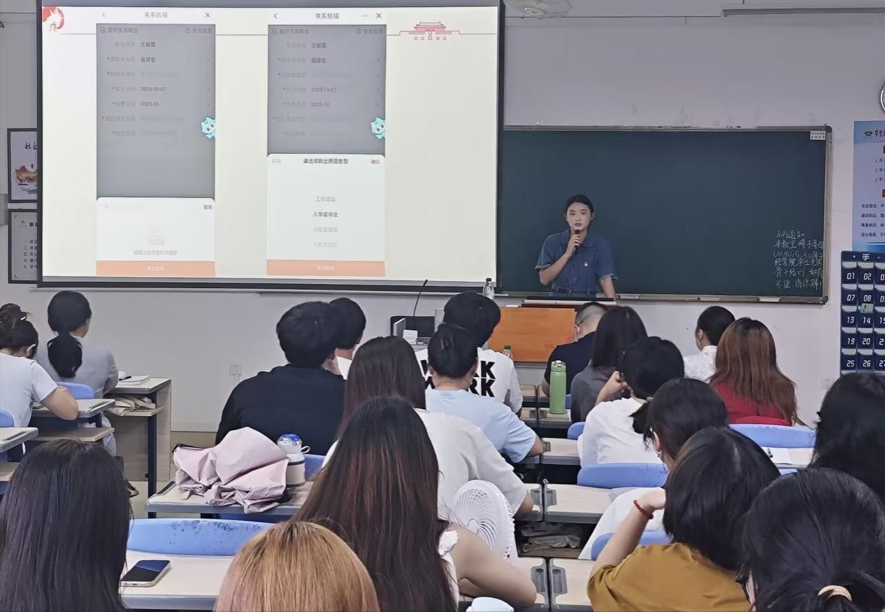 培训会首先由院党建助理团副团长刘仙慧讲解了三会一课与发展党员相关会议记录要点;随后,院党建助理团副团长沈欣颖详细阐述了发展党员的具体流程及材料填写规范,针对材料填写的易错点、关键时间节点进行重点强调;最后,院党建助理团副团长王敏霞系统介绍了党员发展所需台账、备案材料的填写要求以及党员e家系统的操作应用。陈淑华老师对本次培训进行了总结,充分肯定培训成效,强调要将学习成果转化为工作实效。
