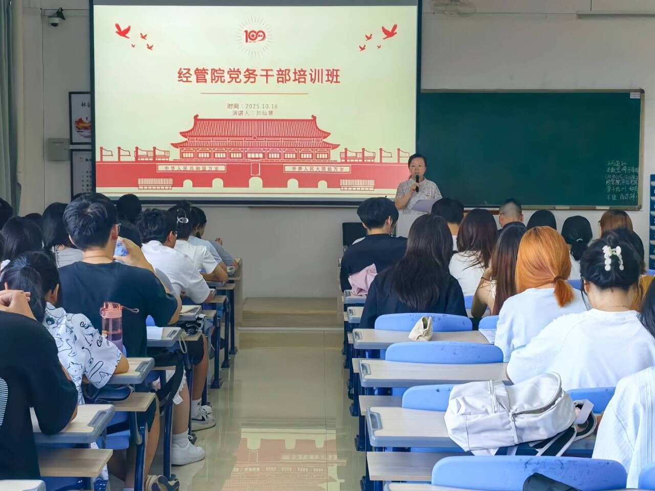 10月16日下午,我院党委于厚德楼401组织开展学生党务骨干培训班,党建助理团干事、各学生党支部负责人、后备党务干部、支部培养人以及物机学院学生党务干部约90余人参与,会议由院专职组织纪检员陈淑华主持。